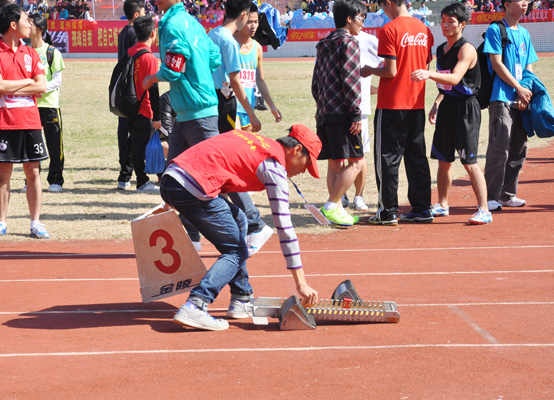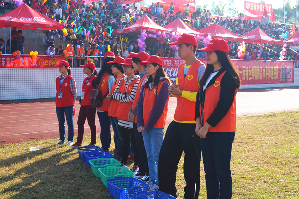 红色田径跑道上运动员的天地,而跑道外绿色草坪旁便是志愿者们的战地。他们默默地伫立着,一丝不苟地维持着运动场上的秩序,他们是现场维序员。“每天十份的加油稿,每一句快语鼓励着自己的同时也鼓励着每一位湛师人”一位维序员向记者说道。当记者问到在运动场上看到自己的同学在比赛时,是否会为他们加油助威。他们却说:“我们因为要严守纪律所以不能表现自己的激情,否则会影响运动员的比赛,只好把鼓励与呐喊默默留在心中。”“为湛师学子服务是我们的荣幸,再苦再累也值得,因为我们在运动场上也见证了许多精彩画面和收获了许多感人场面”这是他们内心最真诚的独白。运动员夺冠,备受瞩目;
