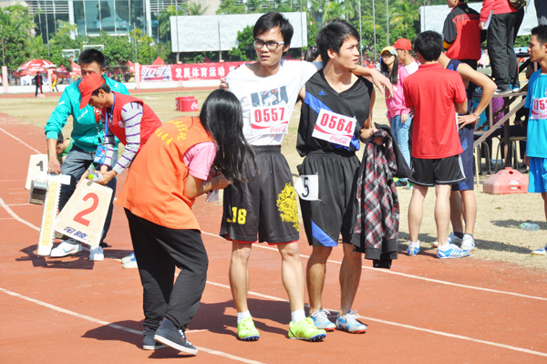 他们在终点守候,为冠军呐喊,替他们感到兴奋;给予落后的小伙伴鼓励,送上安慰暖心的话语;给受伤的同学及时的帮助,为他们减缓伤痛,他们是终点救护员。救护队队长在接受访问时说“工作采用轮班制,减少队员的痛苦,安抚队员情绪,减少他们抱怨的机会。同时,更重要的以身作则,做出志愿者的好榜样。”队长还鼓励同学们加入志愿者的庞大队伍:“救死扶伤不是只有医生才可以做到,只要有一颗奉献的心,志愿者也可以帮到很多人。没有鲜花与掌声,只有阳光与微笑,没有个人主义,只有集体观念。他们在无声中绽放着精彩。