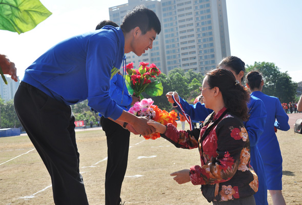 一脸精致的妆容,一袭淡蓝艳丽的旗袍,一双不易驾驭的高跟鞋和自信的微笑成了她们在运动场上醒目的标志。或许在别人眼里,她们风光艳丽,但在风光的背后,却是艰辛的训练过程。记者向她们问道平日的训练过程时,一位礼仪小姐向我们回答说:“每个星期都会抽出固定的时间训练,刚开始时会很辛苦,慢慢就习惯了为获奖的同伴颁奖是她们的荣幸,很高兴能有机会和获奖者们最近距离地分享他们的喜悦。”