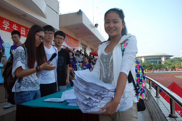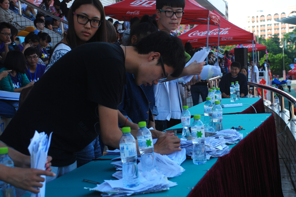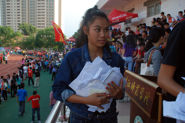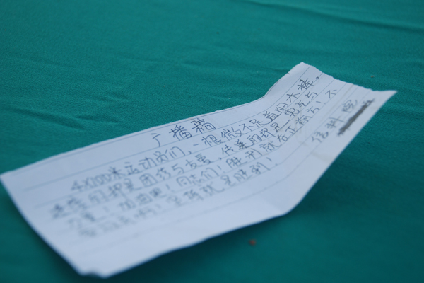 四乘一百的运动员们,一根木棒,传递的是团结与友谊,加油啊,坚持就是胜利....”、“请女子专业组跳远获奖者到领奖台领奖”……赛场上看不见你们热血矫健的身影,大本营没有你激情澎湃的呐喊,记者通道没有你奔波的身影,但你们在现场,在幕后,紧握着话筒,用嘹亮悦耳的声音,读出观众的喝彩、传递运动员的期盼,你们飞扬的旋律,传遍整个赛场,颂出了青春的风采,增添了竞争的欢乐,感谢有你,可爱的播音员们。