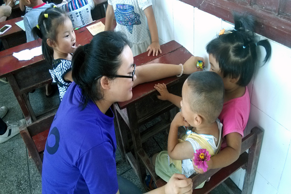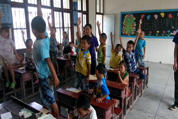 在来到仓坪小学参与实践活动之前,一直希望能给他们带去很多的正能量的东西或是技能,报以改变他们一生的崇高想法而来。真正到达之后,我强烈地意识到,他们带给我们的更甚于我们所带给他们的。过去,我们常常以所谓的“城市人”自居,觉得无论在生活条件方面还是在受教育程度的方面,我们都拥有比他们更为优越的资源。因此每当我们把想法转向到农村支教时,内心里总是有种同情,怜悯的倾向。其实不然,这些深山里的孩子,尽管生活质量和受教育资源都不及我们,但是,他们与生俱来的淳朴和纯良是我们都无法企及的。有山便满山地跑,有水便自由地游;植被丰富多样,便采摘折纸;石子繁多,便自创游戏。在这儿,他们可以充分发挥自身地想象力和无穷无尽的实践能力。