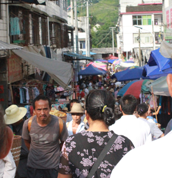 刚刚下车,实践队的队员们看着眼前的一幕都惊呆了,纷纷感叹道:“哇!太神奇了!也太多东西卖了吧!而且怎么那么多人啊,一眼望去都没有尽头的!天啊!”只见石路两边摆满了摊位,有卖应季水果的、有卖自家编的竹制工具的、有卖糕点糖水的,而且几乎每个摊位前都挤满了人,当地的群众背着有着民族特色的背篓,一看到喜欢的、需要的东西就毫不犹豫地付钱扔到自己的背篓里,有的年轻妇女更是既被孩子又背买到的大白鸭,背篓里的孩子和大白鸭玩得不亦乐乎。