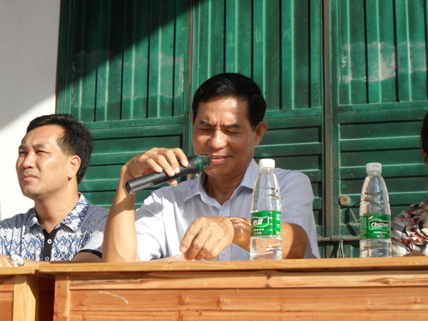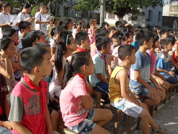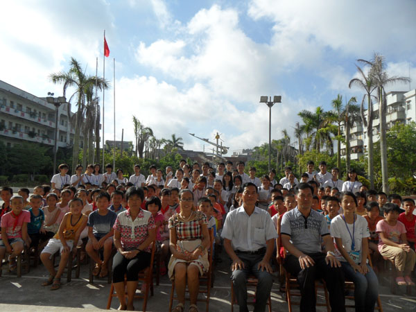 主持人介绍完领导和嘉宾后,冼耀中校长发表讲话,他感谢我校“扬帆”实践队的到来,同时希望服务队队员充分利用实践平台,结合所学专业知识,开展具有特色的支教活动。随后,并对同学们提出了一些建议,例如要树立“安全第一”的观念,虚心向群众学习,要敢于吃苦,不怕困难,发扬“奉献、友爱、互助、进步”的志愿者精神等。最后,“扬帆”实践队阮雪柔队长发言,简单介绍了本次活动的内容,以及对服务队提出了要强化宣传,突出特色,扩大影响力;要深入基层,走近群众;团结合作服从指挥等要求。