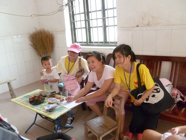俗话说,万事开头难。虽然在前期踩点时,调研组已摸清当地居民的居住点和农忙时间,但因部分居民并不符合抽查条件,所以仍需继续寻找适合的调研对象。并且,当志愿者走近当地的农民时,“碰钉子”的情况也时有出现,一些叔叔阿姨由于没有接触过类似的调研活动,并不配合我们的工作。但调研组也充分理解他们,知道他们赚钱不容易,分分毫毫都是用血汗来换取的,所以不敢轻易相信别人。但我们并没有因此而气馁,而是决定用我们的真诚来打动他们,经过一番细致的说明和解释,居民们终于被我们的真诚打动了,纷纷走过来与我们攀谈,提出他们的宝贵意见。有些学生的家长知道身穿黄色队服的是支教望夫中心小学的小老师,还热情地招待我们,并协助我们开展问卷调查。