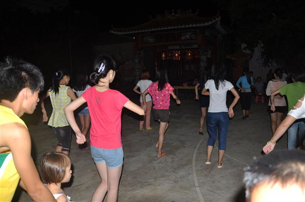 有些大胆的康港小学学生看见老师在跳,也加入了老师的行列,还有些拉着他们的家长加入,原先家长们是有些扭捏不怎么肯跳,后来越来越多的村民加入了,他们也放开了手脚,跟着前头的领头的队员跳起来。