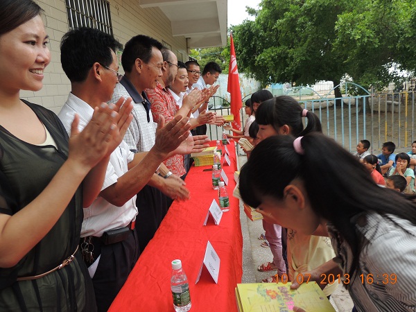 今天上午,我们队员早早就起床开始打点一切。首先是招募学生,给学生分好班,然后就开始讲课。教学的任务是一天五节课,上午三节,下午两节。下午是我们队伍的启动仪式,这时候又体现了我们队伍的团队精神。大家分工合作,支教的队员继续上课,不用支教的就去布置现场,还有一部分人去迎接领导,一切都已经准备就绪。下午四点,领导到来。主要的到场嘉宾有湛江师范学院音乐学院的党委刘福瑞书记、继续教育学院的黄增副院长、音乐学院的党委王雄艺副书记、敦文村委的黄连书记、学增纪念小学的黄鹏校长、音乐学院的辅导员李均凤,还有音乐学院的陈俊宏老师。对于领导的亲临,大家都很高兴,气氛十分活跃。我们的队伍还捐赠了价值2200元的图书、价值1600元的体育教学用品,以及价值4000元的钢琴。学生非常高兴,气氛在这时到达了顶点,掌声雷动。开幕仪式结束后各领导还视察了我们的生活环境,对我们的队员十分关心。临走的时候也给了很多宝贵的意见给我们,让我们受益匪浅。