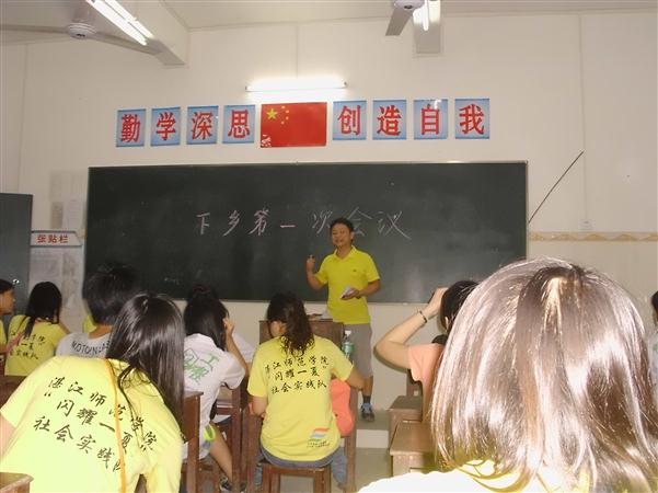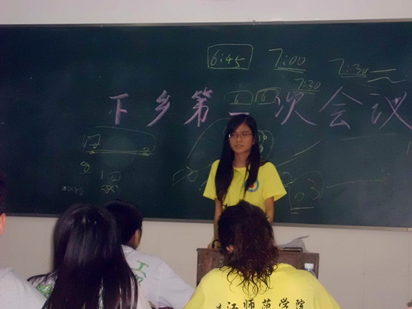 会议主要主要针对第二天的开班仪式相关工作进行详细的工作安排,包括接送学生、招生分班选课等。根据基地蕉林小学的实际情况,夏老师给大家了作了详细讲话,强调买菜做饭、招生分班等活动开展时都要保证学生的自身安全,也鼓励队员们要克服艰苦的环境,落实好三下乡各项工作。