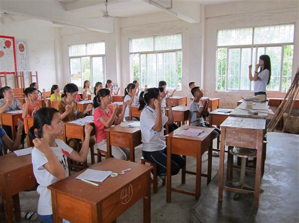 在支教老师的带领下,学生们跟着老师的动作,一个动作一个动作地认真学着。支教老师告诉学生们这手语给了残疾人一片美好的天空,这手语要是学会了会给更多的残疾人士带来美好的东西。学生们一点一点地跟着老师的动作,用肢体来表达着对世界的美好向往。在这节课中,学生们学会了用简单的手语交流,肢体语言的学习是他们变得更有爱心,懂得了手语的含义。学生们学会了除了声音语言以外的语言,那就是无声传达信息的手语。
