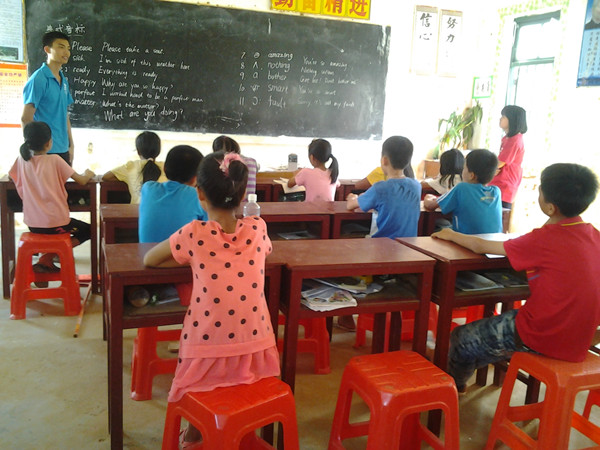 每天天微微亮时,我们都还在教室里用书桌拼成的“床上”做梦时,楼下已经响起了孩子们追逐玩闹的声音。或许,作为一个生活在城市里,精通电脑游戏的大哥哥来说,我不屑牺牲清晨睡眠时间去到学校,等待着一个多小时之后的课,但我们又是不是能体会到他们对外面世界的期待,对来自城市的哥哥姐姐们的好奇呢?或许,孩子们暑假来上课,不是因为暑假无聊,而是希望,能有这样一个窗口给他们,让他们对知识殿堂的认识,不再是停留在六鳌小学这块黄土地上,我们来到这里这块承载农村人走出去的希望的土地,除了给在城市惯坏了的我们上一堂人生课,还要给我们的孩子们,点燃一盏盏希望的灯:在这片农村的土地之外,还有更多的惊喜。给孩子们上课,不要再是见到一双双迷茫眼睛盯着黑板的单词,憋红了脸,却读不出简单的一个句子。我们能给他们的,不是给与物质上的短暂的支持,而是一种无谓的精神,在这些幼苗还是蓄势待发时,给他们浇灌名为理想与希望的养分!