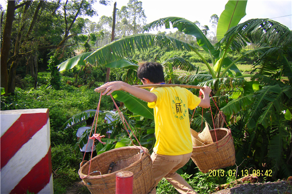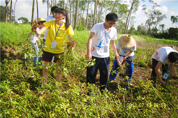在与当地一位姓林的村民的交谈中,队员们了解到,农业很依赖天气,天气的好坏直接影响到农作物的收成。村民还透露,在他们居住不远处的郊外有一片田地,土地肥沃,种的花生年年丰收。与村民交谈后,队员们挑起箩筐,到林阿姨的花生田地里帮忙拔花生。花生粒粒肥大,队员们将花生摘下来洗涤干净后拿回村民家,村民连连说谢谢。尽管汗流浃背,尽管头顶骄阳,但队员们在这次实践中真切的感受到农民的艰辛,让在温室中成长的他们有了不平凡的体验。