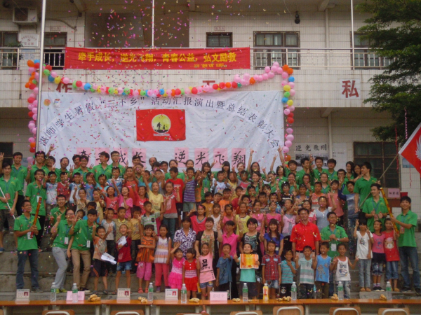 7月14日下午,物理学院“逆光飞翔”实践队在廉江市和寮镇长吉埇小学举办湛师学生“暑假三下乡”活动汇报演出暨总结表彰大会。其中,长吉埇小学校长,老师代表、长吉埇村委代表,部分学生家长,学生以及实践队成员都参加了本次大会,而主持本次大会的两名主持人是两名五年级的学生。