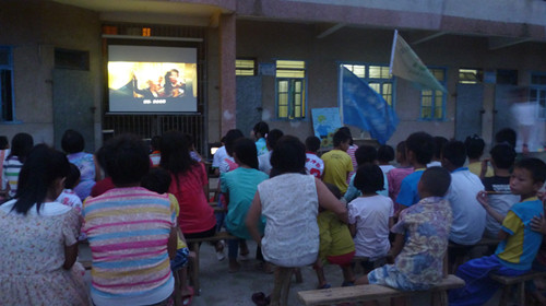 7点30分,电影三下乡正式开始,队长发表了致谢词后又强调了电影三下乡的主题和现场纪律。本着宣传中国梦的目的,《建党伟业》拉开了帷幕。大家都很认真地观看,特别是上了年纪的家长看得特别入神,但是年纪小的学生好像对这部电影并没有感兴趣,只是在一旁玩耍。保卫组的队员在看电影的同时也不忘协助派出所维持秩序,一切都有条不紊地进行着。