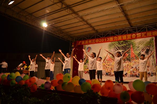7月27日,是“希望”实践队来到高州三中的最后一天,也是高州三中活力英语夏令营的最后一天。在这离别的前夕,活力英语夏令营的师生合力举办了一场精彩的文艺晚会。