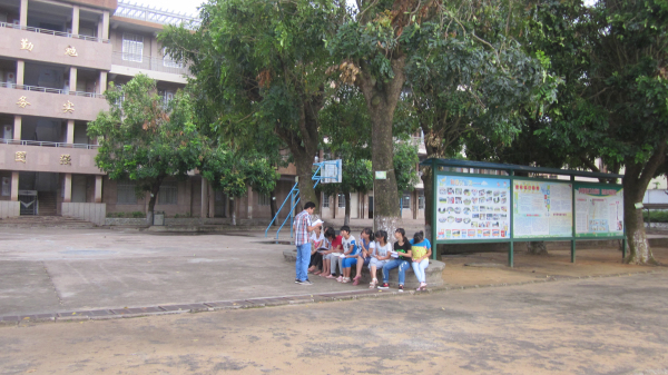 湛江师范学院红土情缘实践队摒弃昨日的劳累,清晨的第一缕晨光照耀着湛江市第十九中学这个早已溢满了朗朗书声的校园。在队员们的带领下,孩子们约100多名学生早已集中在旭日东升的国旗下,有的在清爽的榕树树下,伴着晨曦开始了他们精神抖擞的一天——晨读。