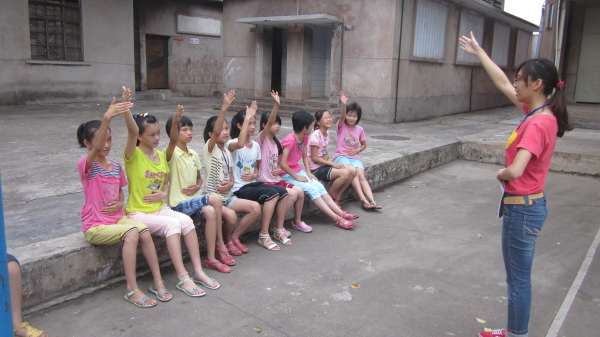 在实践队队员的耐心讲解和循循诱导下,小学生们对英语的兴趣被点燃了,由涣散的声音变成了铿锵有力而整齐的朗诵,高年级的同学学习疯狂英语的手势,正真“热爱丢脸”。据了解,孩子们刚开始时的拘谨也被队员们灿烂热心的笑容感染了,很快便与福彩队队员打成了一片。