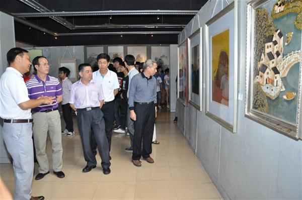 6月15日,美术学院2013届美术学专业毕业生作品展在美术学院展厅开幕。校党委梁英书记,刘海涛副书记,刘周堂副校长、邵乐喜副校长,湛江市美术家协会冯兆平主席,林晓伟副主席,学校党委办黄达海主任,教务处程可拉处长,宣传部陈恕平部长,招生与就业处钟炳辉处长,通识教育中心林春主任,校团委郭和才书记,学生处正处级调研员李爱群,市教育局李晓娥科长,广东海洋大学美术系张坤主任,市美术家协会成员,美术学院领导班子及各专业师生参加了开幕式。开幕式上,巨云和院长、冯兆平主席、刘海涛副书记先后发言,充分肯定了此次毕业展的举办,随后梁英书记宣布此次展览开幕。