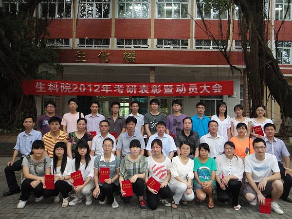 据悉,生科院在2012年的考研成绩创历史新高,共有30位同学被中国科学院、中山大学、暨南大学等国内知名院校录取,且该院的四个专业——生物科学、生物技术、园林以及烹饪专业都有考研成功的学生,学院考研录取率最终达到9.3%,其中生本专业考研率超过12%。据初步统计,该院考研率位居全校各二级学院之首。