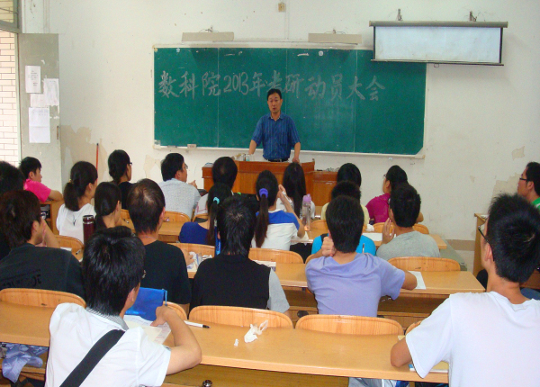 湛师新闻网5月31日讯 为了进一步提高学生的考研积极性,营造良好学风,昨天,数科院在榕燕楼105室举行考研动员大会。数科院李晓培院长,数学系主任刘小松教授、计算科学系主任吴勇旗博士,辅导员全光华老师、杨洁老师以及准备2013年考研的学生出席了大会。