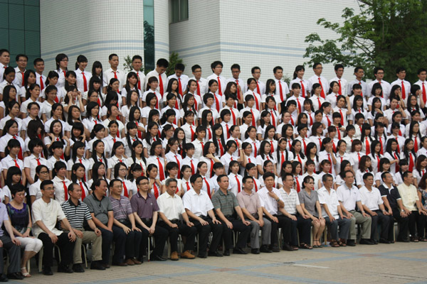 湛师新闻网6月2日讯 六月盛夏,别情依依。2011届的学生即将离开校园,走进社会。为了给我校2011届的毕业生在离校前留下美丽的印记,昨日,校领导梁英、罗海鸥、刘海涛、刘周堂、李江凌、邵乐喜出席了人文学院在雷阳文化广场举行的主题为“温馨毕业季,浓浓手足情”的2011届毕业生合影留念活动。