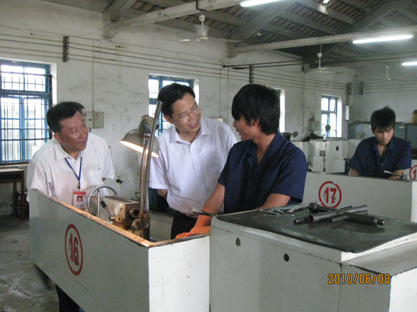 调研组一行首先到湛江市技师学院调研。该校校长于锦杰和主要负责人带领罗海鸥院长一行参观了技师学院数控车床、线切割与电火花、汽车维修、中式面点等几个实训中心,然后参观了学生宿舍、学校校园和校史馆。调研组的成员们一边听于校长详细介绍实训中心相关设备的投入和使用情况,一边向工作人员了解学校教学的基本情况,有的成员还仔细询问学生的学习情况。调研组的老师们看到技师学院把理论讲解和实践操作融为一体进行教学,感触颇深。在看到技师学院的学生清扫的整洁校园,更是赞赏不已。