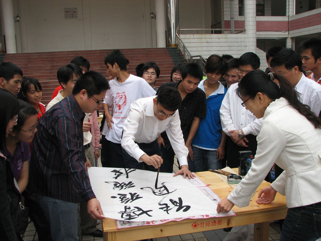 湛师新闻网3月22日讯 为了全面提高学生综合素质,增强就业竞争力,促进大学生的成长成才,物理学院昨天在雷阳广场举行了以“博雅魂·技能风”为主题的第三届综合素质大赛系列活动的开幕式,现场同时举行了“三笔”字与班级拔河比赛活动。