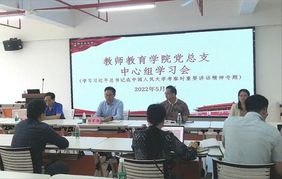 5月6日上午,教师教育学院党总支在第五教学楼a栋612室召开中心组学习会,深入学习习近平总书记在中国人民大学考察时的重要讲话精神,汲取智慧力量,明确奋进方向。教师教育学院班子成员、党总支委员、党支部书记、支委及各部(室、中心)负责人参会。学习会由党总支书记练有扬主持。