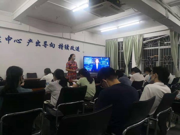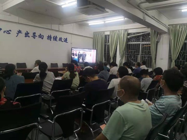 会上,全体教职工集体观看习近平总书记在中国人民大学考察时的新闻报道以及相关的学习资料。