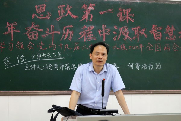 3月19日,商学院党委书记何等浩于燕雷楼301室开讲思政第一课,课程主题为:从党的百年奋斗历程中汲取智慧和力量——深入学习领会党的十九届六中全会以及2022年全国两会精神。