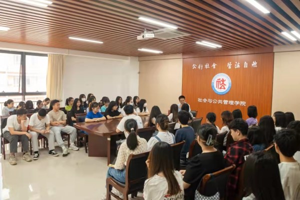 冯亮如还向同学们介绍了学院成立的背景,并解读“公行社会,管法自然”的学院理念和院徽的设计含义。他指出社管学子具有积极竞争的意识,学习自律自强、吃苦耐劳的品质,自我管理的能力,建议同学们确立总体目标,系统做好大学规划,努力在奋斗新征程上展现新风貌收获新成果。