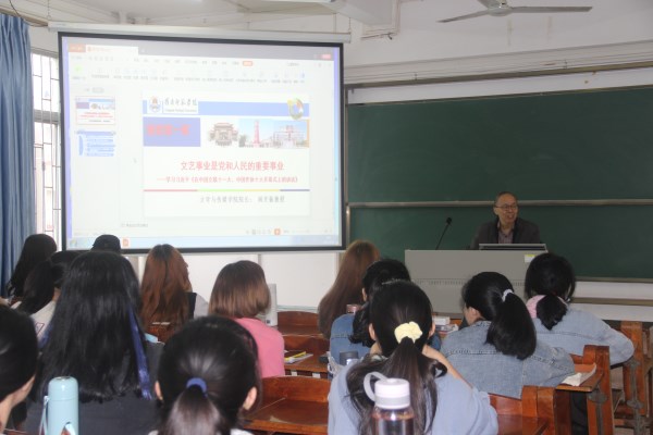 “我们要立足中国大地,讲好中国故事,以更为深邃的视野、更为博大的胸怀、更为自信的态度,择取最能代表中国变革和中国精神的题材,进行艺术表现,塑造更多为世界所认知的中华文化形象,努力展示一个生动立体的中国。”为此,阎院长对汉语言文学专业青年学生提出五点希望:一是要心系民族复兴伟业,热忱描绘新时代新征程的恢宏气象;二是坚守人民立场,书写生生不息的人民史诗;三是要坚持守正创新,用跟上时代的精品力作开拓文艺新境界;四是要用情用力讲好中国故事,向世界展现可信、可爱、可敬的中国形象;五是要坚持弘扬正道,在追求德艺双馨中成就人生价值。