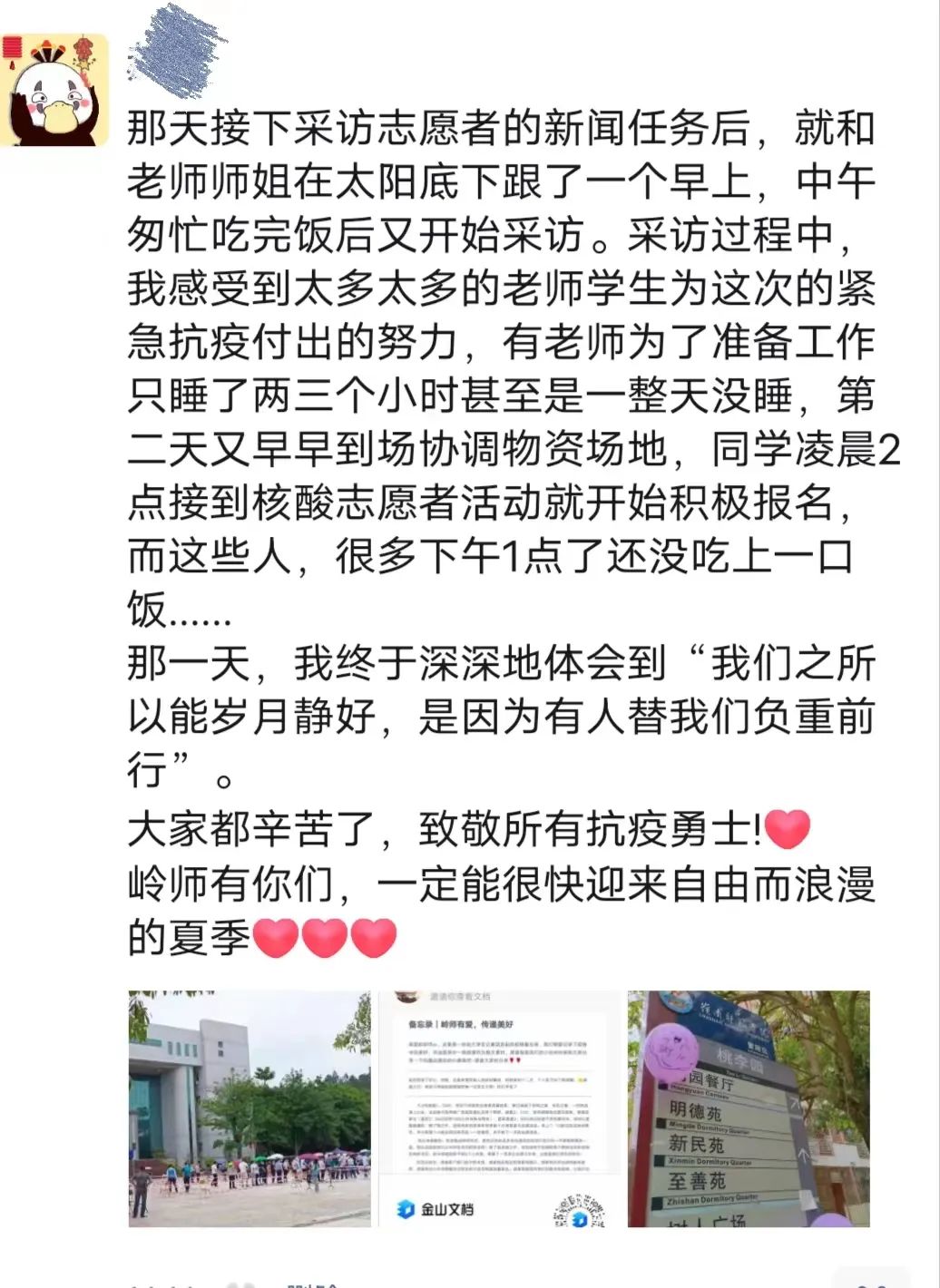 向岭师师生征集疫情中的温暖瞬间