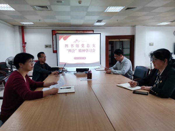 3月30日上午,图书馆党总支在党员活动室召开全国两会精神学习会,党总支书记李健彬主持会议,党总支全体委员参加了会议。