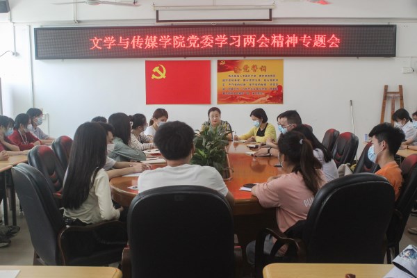 2022年全国两会于3月11日在北京胜利闭幕。两会对我国把握新时代方向,观大势、谋全局、明方向有着重要意义。为认真学习贯彻两会精神,坚持思想和行动上同党中央保持高度一致,文学与传媒学院党委组织全体政工队伍、主要学生干部于3月22日开展专题学习。