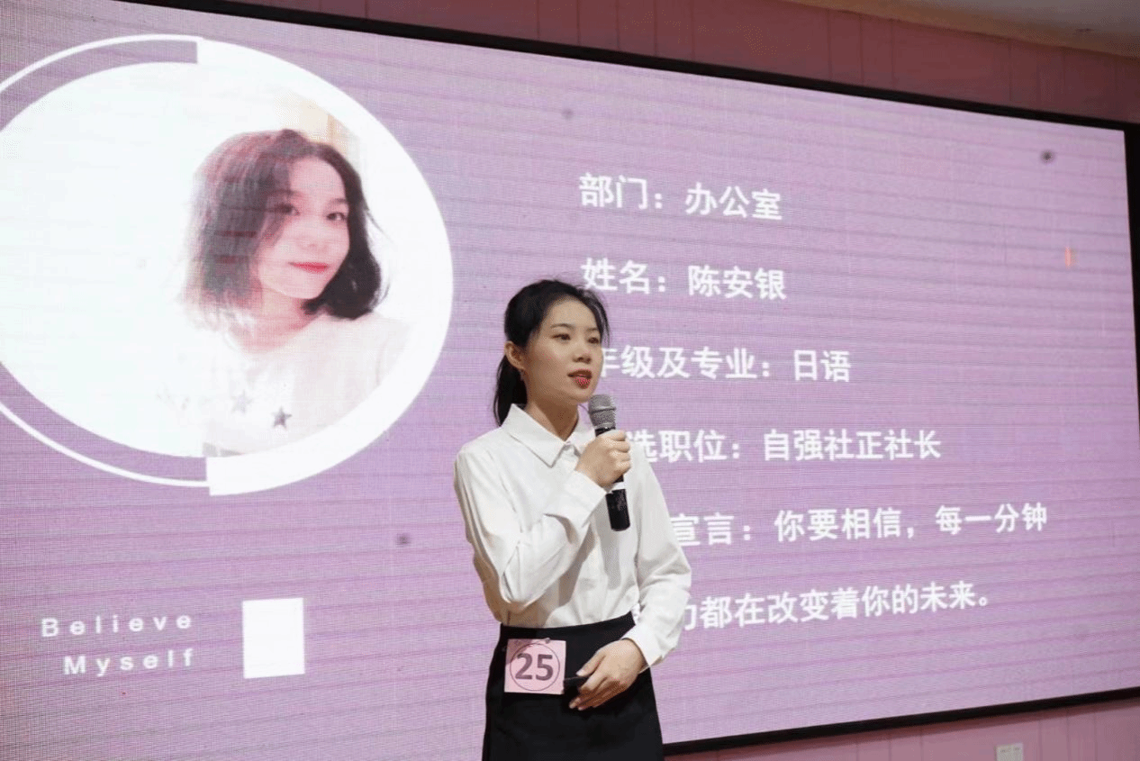 “能做事的做事,能发声的发声,有一分热,就发一分光。”优秀共产党员张桂梅是陈安银的榜样,她认为张桂梅具有一名优秀共产党员所必备的最重要的品质:温暖且强大。正是抱着温暖他人,强韧自我的决心,陈安银在各类学生干部队伍的招募中,毅然选择加入了以“传承自强精神,锻造自强之才”为宗旨的自强社,竭力为岭南师范学院经济困难的学生提供经济、学习和生活等各类助学服务。在参与自强社主干竞选前,陈安银锲而不舍地向师兄师姐请教,一次又一次地把自己的工作策划推翻重做,在对自己的严格要求下,最终成功当选了自强社社长。在当选自强社社长后,陈安银对社内积极创新,勇于实践,通过努力一步一步地把当初的设想变为现实,使社内气氛融洽,工作得以顺利开展。此外,陈安银还积极参加献血、迎新等志愿活动,希望通过做力所能及事情来帮助他人,温暖他人。
