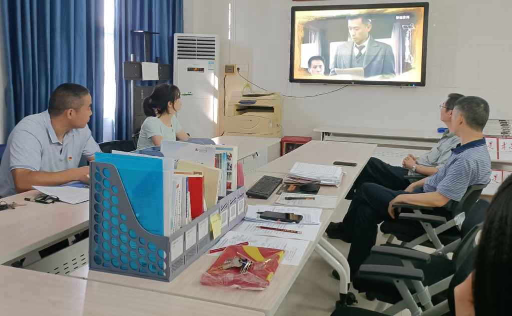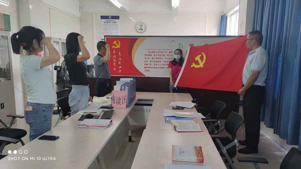 分析测试中心党支部在7月1日下午开展“喜迎二十大、奋进新征程”主题党日活动。以“一听二看三学”(一听红色经典歌《中国,中国,鲜红的太阳永不落》,二看红色经典故事《党章内外的故事》,三学习《中国共产党简史》)方式迎接建党101周年。重温老一辈共产党人走过的风雨历程,弘扬伟大建党精神,集体过“政治生日”,在老党员冯宗财同志带领下全体党员重温入党誓词。
