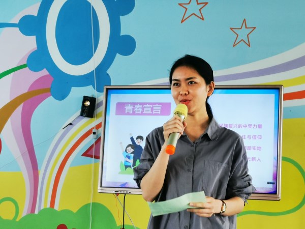 在畅谈“青春宣言”环节,大家一起讲述“我的青春故事”。青年教师祝林说:“我认为新时代青年应该是会思考、敢尝试、勤反思,借用冬奥会运动健儿隋文群、韩聪的一段话:面对新的事物敢于尝试、敢于挑战、这是我们年轻人应该有的一种状态,哪怕前面是万丈悬崖我们都愿意奋不顾身地投入进去,这就是我们眼中青春最好的样子。”
