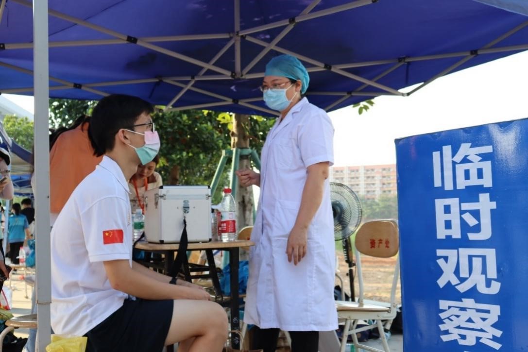 校园大门旁,临时观察点下的医护人员严阵以待。学校门诊部积极落实防疫职责,安排医护人员24小时全天候参加校门防疫值守,建立临时医学观察点,以便及时应对体温体征及健康码突发异常等人员,处置体温体征及健康码异常等人员,组织开展新生全员新冠病毒核酸检测及入学体格复查,做好军训医疗保健,共同做好新生“健康第一课”等知识培训工作,切实保障校内学生的防疫安全。