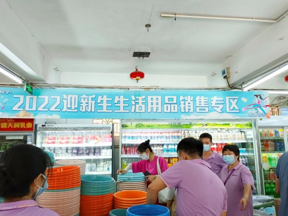 在雷阳超市、泽园超市等超市内,记者看到,每个超市专门设置的开学生活用品购物专区,极大方便了新生购物,照顾到了新生的生活日常所需。
