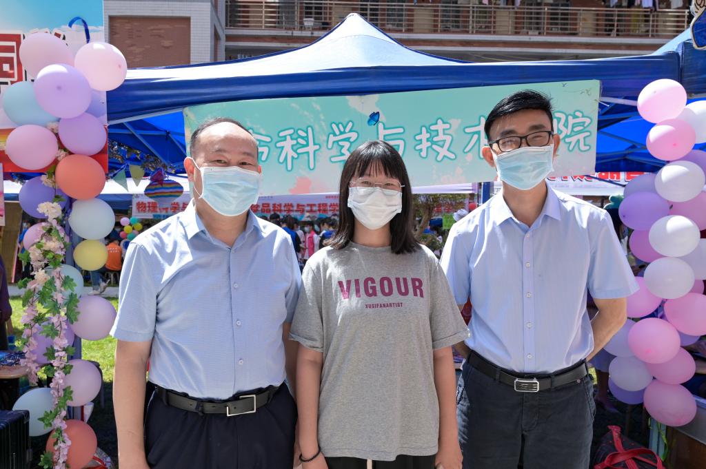 迎新现场,校长阳爱民和党委副书记黄达海一起与新生合影(范昕怡摄)