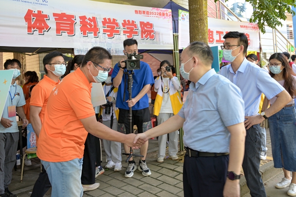 在明德苑接待点,阳爱民与教育科学学院特聘教授、系主任吴武典教授亲切交流,并点赞了法政学院为新生制作的特色信封;在尚志苑接待点,观看了由音乐与舞蹈学院20级学生与22级新生共同制作的献礼党的二十大视频——《新征程》。走访过程中,他向所有工作人员与学生志愿者表示了亲切问候与真挚感谢,并叮嘱大家继续做好迎新工作。
