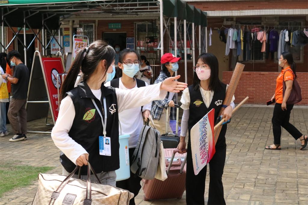 新生到来后,手中的行李立即被前来迎新的教师和学生们接过,让新同学们“轻装上阵”完成报到流程,尽快入住宿舍以缓解旅途劳累。