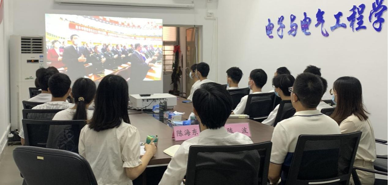 10月16日上午10时,中国共产党第二十次全国代表大会在京隆重开幕,电子与电气工程学院组织全体师生和党员通过集中和分散的方式,观看党的二十大开幕会现场直播盛况。学院院长陈波、党委副书记陈海东带领部分学生党员在综B107集体观看。