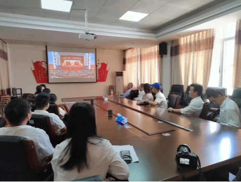 全校领导、党委委员、党委理论学习中心组成员、职能部门主要负责人集中在未来教育空间站收听收看大会直播
