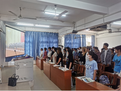 学校420名团学干部在第三教学楼分会场集中收听收看