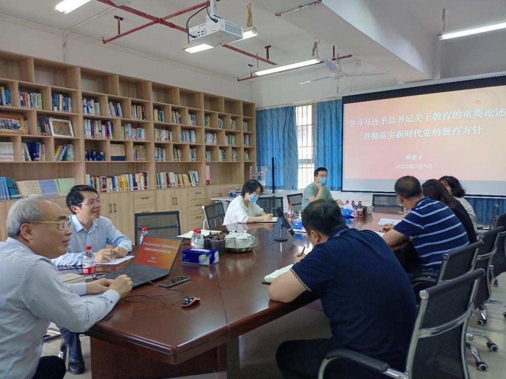 为学习贯彻习近平总书记在中国人民大学考察时的重要讲话精神,深化支部党员对我国教育事业规律性的认识。5月9日下午,省重点实验室党支部开展学习习近平总书记关于教育的重要论述专题党课活动,邀请学校党委办公室主任、机关党委书记陈恕平研究员讲党课。活动由省重点实验室常务副主任、省重点实验室党支部书记郑剑虹主持。
