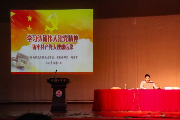 4月17日上午,校党委常委、宣传部刘坤章部长走进文学与传媒学院分党校,为第八十七期入党积极分子培训班全体学员做“学习弘扬伟大建党精神,筑牢共产党人理想信念”主题授课。