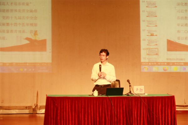 卢勃教授以《科学认识和把握习近平总书记关于教育的重要论述》为主题,从“为什么要深入学习贯彻习近平总书记关于教育的重要论述?”“习近平总书记关于教育的重要论述核心思想和深刻内涵是什么?”“学习贯彻习近平总书记关于教育的重要论述怎么做?”等三个维度,引导新党员同志深入了解习近平总书记关于教育的重要论述。卢勃强调,作为一名高校学生党员要科学认识和把握习近平总书记关于教育的重要论述,从坚定政治方向、领会精神实质、把握思想核心、树立目标意识、坚持实践导向,整体推进学习向深里走、向实里走、向心里走;作为师范生,要进一步坚定信仰信念、激发奋进力量,为党和国家的教育事业奉献青春力量。