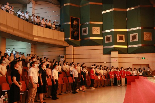 总结表彰会上,在场人员一同观看了学员的成果汇报视频,并对学习过程中表现优秀的学员进行嘉奖,教科院党委书记梁晋同志和学校党委组织部副部长莫琼玉分别为两个班次做培训总结发言。本次培训具有组织周密、安排科学,课程内容丰富、形式多样,实践与理论相结合、知行合一,纪律严明、管理严格,树立典型、培育先锋等特点。通过本次培训,各位新党员同志形成了良好学风,加强了理论武装,增强了党性修养,强化了先锋力量。本次培训在全体起立奏唱国际歌中圆满结束。