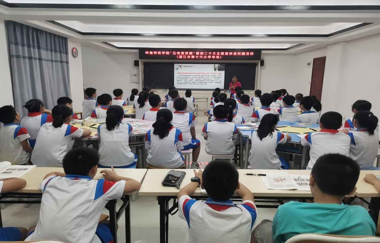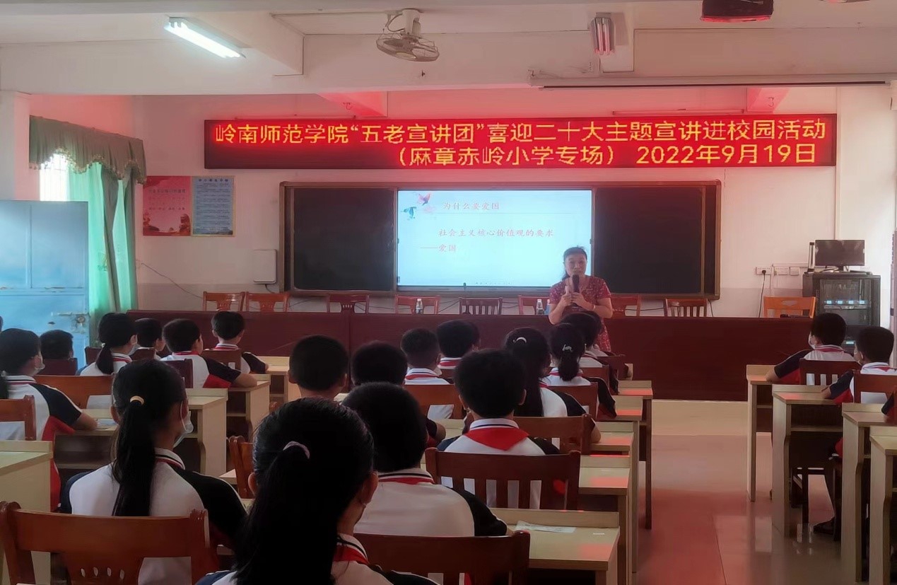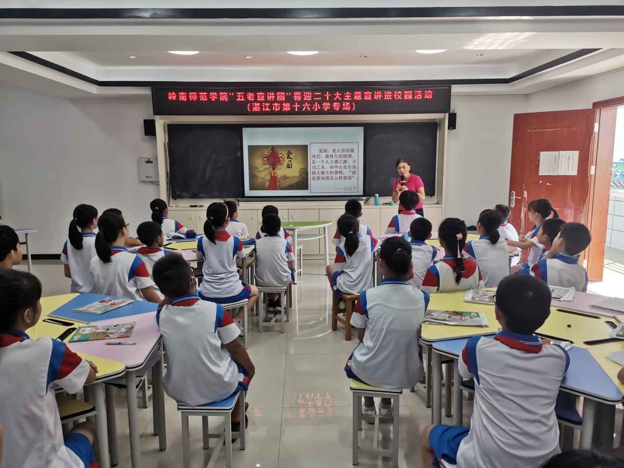 “育树育根,育人育心”。近日,岭南师范学院“五老宣讲团”成员李爱群副教授分别深入湛江市麻章区赤岭小学和湛江市第十六小学开展专题宣讲活动,受到了所在学校师生的热烈欢迎。