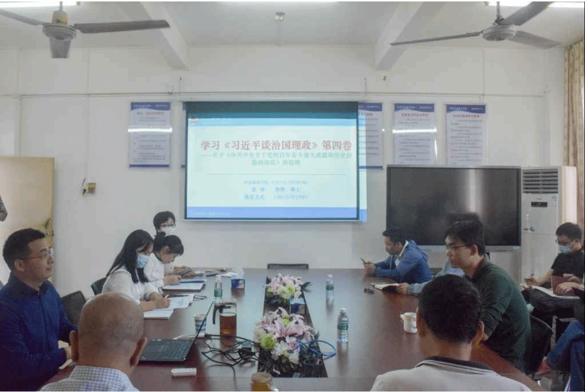 全柱强调要把学习宣传贯彻《习近平谈治国理政》第四卷作为重大政治任务,与前三卷结合起来,认真贯彻落实;要求全体师生在读原著、学原文、悟原理的过程中深刻领会、准确把握《习近平谈治国理政》第四卷的思想精髓和核心要义,深刻领悟“两个确立”,增强“四个意识”、坚定“四个自信”、做到“两个维护”;党员同志要坚持学思贯通,知行合一,弘扬伟大建党精神,保持清醒和坚定,自觉在教学科研、人才培养、管理服务等工作和学习生活中发挥先锋模范作用。会上,全体教职员工积极发言,结合自身的思想、学习、工作和生活等方面表达了自己对《习近平谈治国理政》第四卷的学习感悟,表示将会进一步加强理论学习,做到学懂弄通做实,不断增强自身能力。